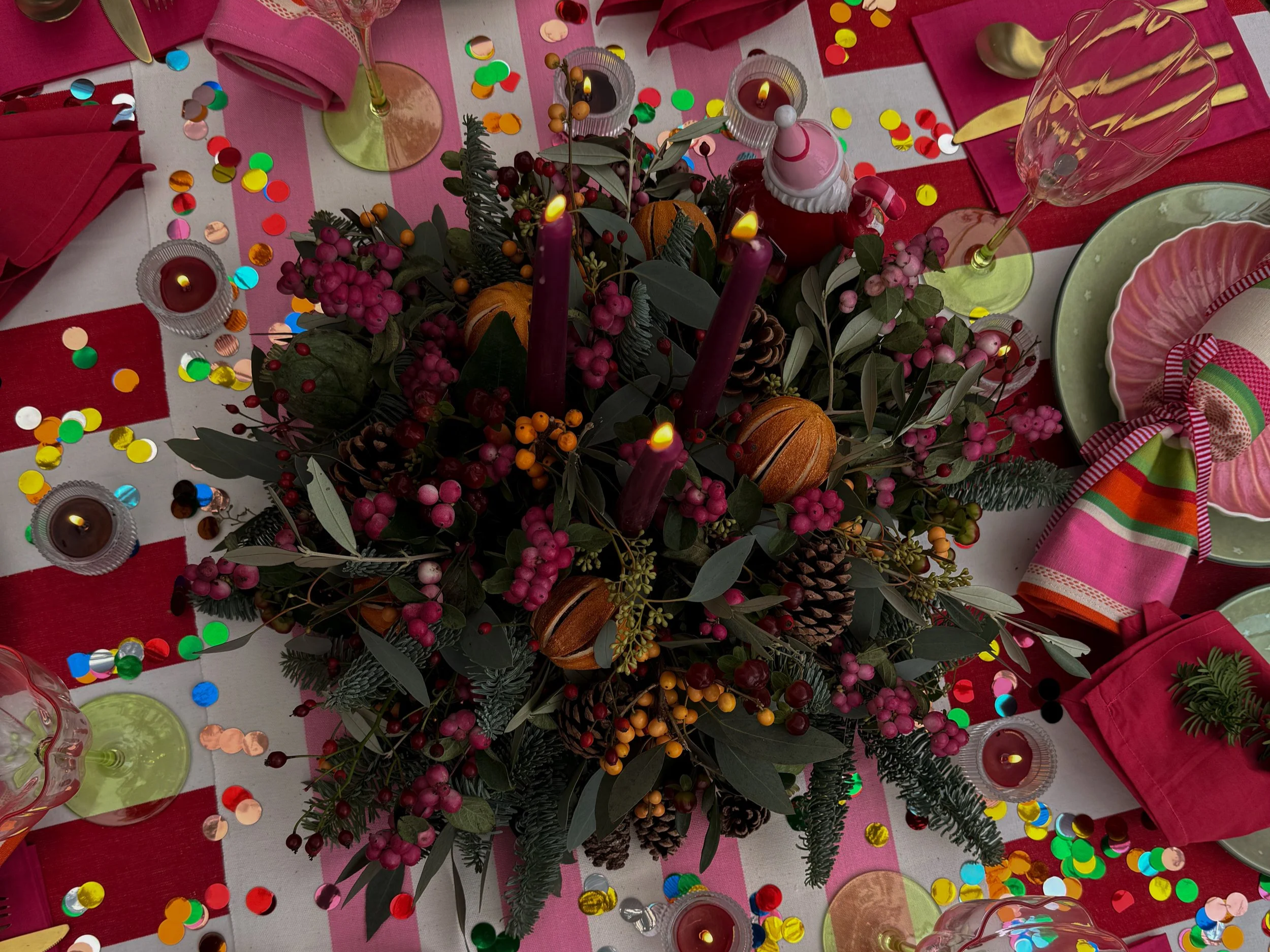 We created a beautiful tablescape to showcase The Stripe Company’s linens for a Christmas photo shoot.